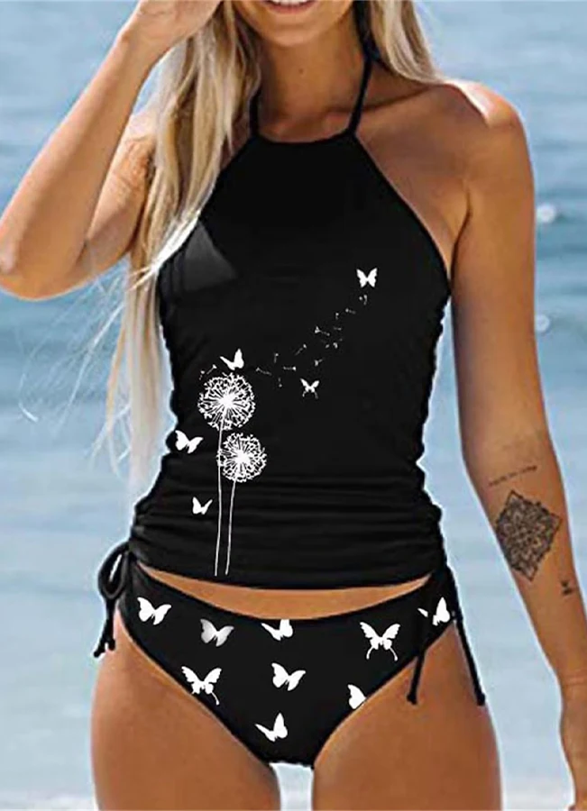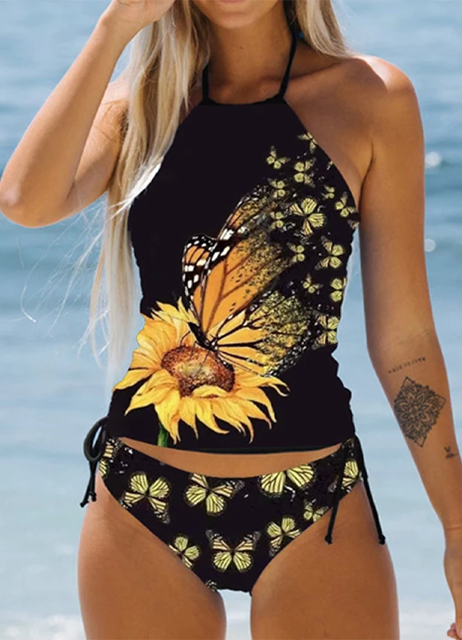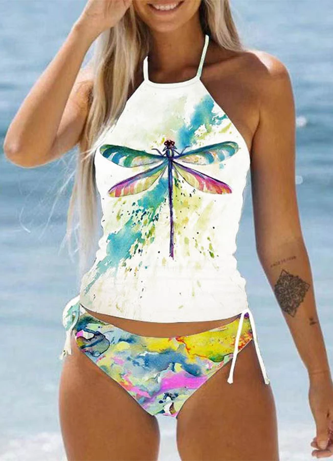 Summer New High Elastic Bikini Set Small Turtle Print Two Piece Set Lace Up Sexy Women's Beach Swimsuit S-6XL